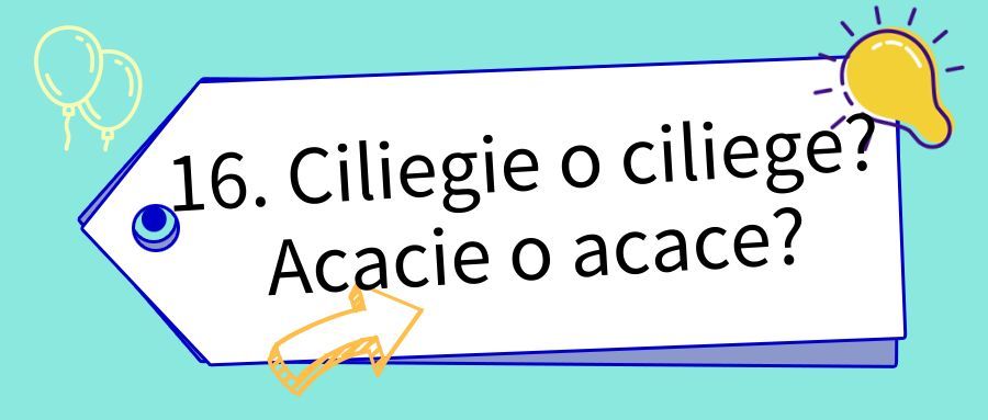 以非重读的-gia和-cia结尾的阴性名词,若字母G和字母C的前面是元音的话,它们的复数形式中保留i。因此图中的两个单词的复数形式应该是ciliegie和acacie。