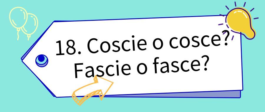 和上条一样,以-scia结尾的阴性名词,若字母C或G前是辅音字母的话,它们的复数形式中要去掉非重读的i。因此,图中两个单词的复数形式应该是:cosce和fasce。