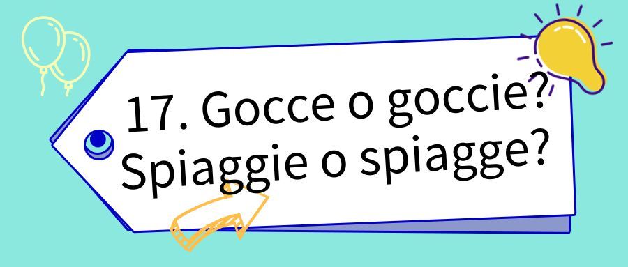 与上面那条形成对比的是,以非重读的-gia和-cia结尾的阴性名词,若字母G和字母C的前面是辅音的话,它们的复数形式中要去掉i。所以图中两个单词的复数形式应该是spiagge和gocce。