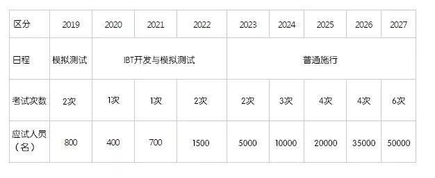 在2023年首次进行的口语评价后,将会以每年2次5000名考生的规模进行,之后将以2024年1万名,2025年2万名,226年3万5千名,2027年5万名的规模逐年增加。